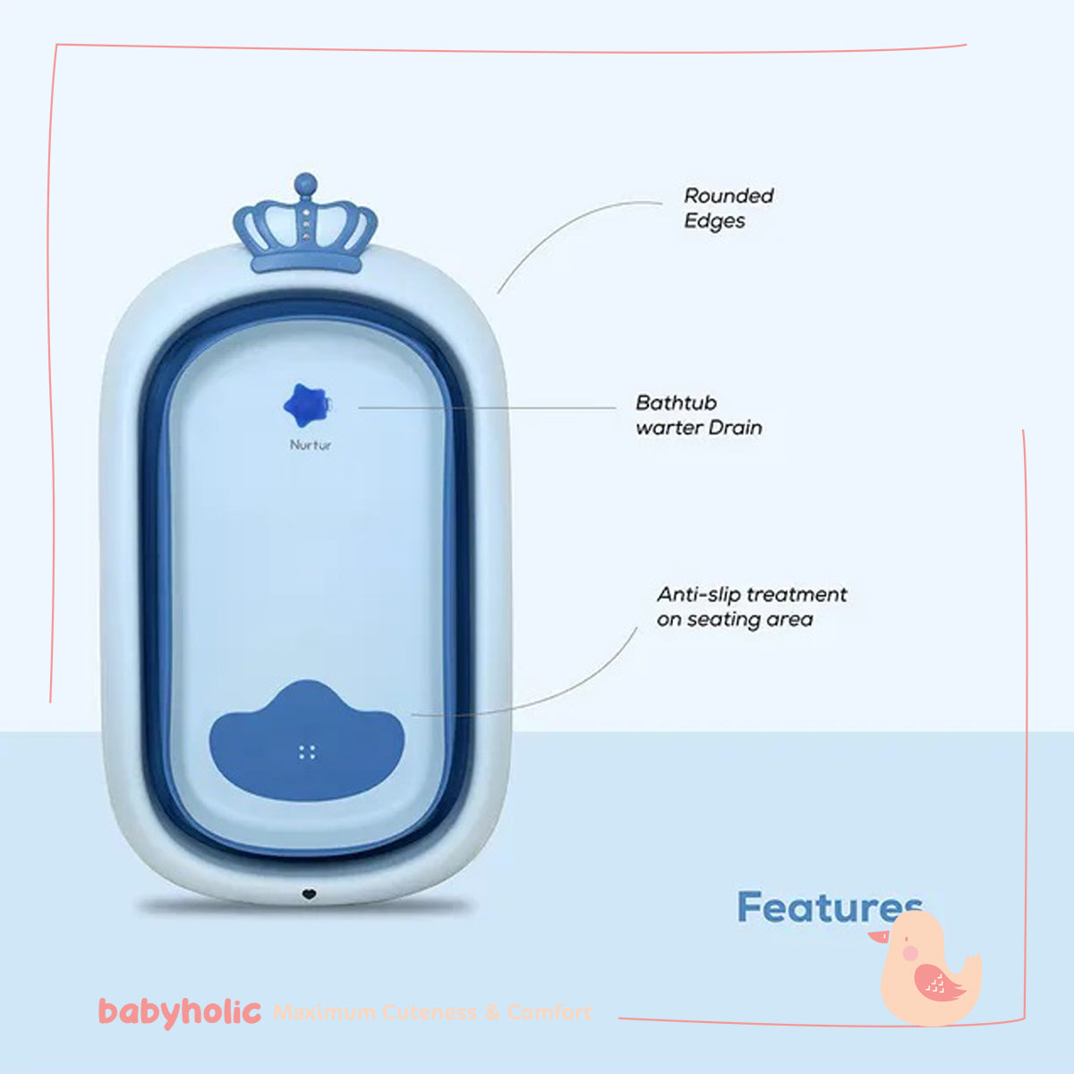 The foldable baby bathtub will not occupy much space, and can be easily opened when in use. It can be placed in a narrow space or can be hung when not in use. This bathtub creates a safe and comfortable environment for children while bathing. This smartly designed baby accessory features a digital temperature sensor to prevent overcooling and overheating. Baby lies down to bathe and play while retaining heat for a long time without losing it to enjoy bath time. This bathtub will immediately attract children's attention with its cute appearance and bright colors so they can happily enjoy bath time. The Bathtub is equipped with strong, supportive legs with anti-slip material making it easy to use on any flat surface. Water-resistant features help drain quickly.