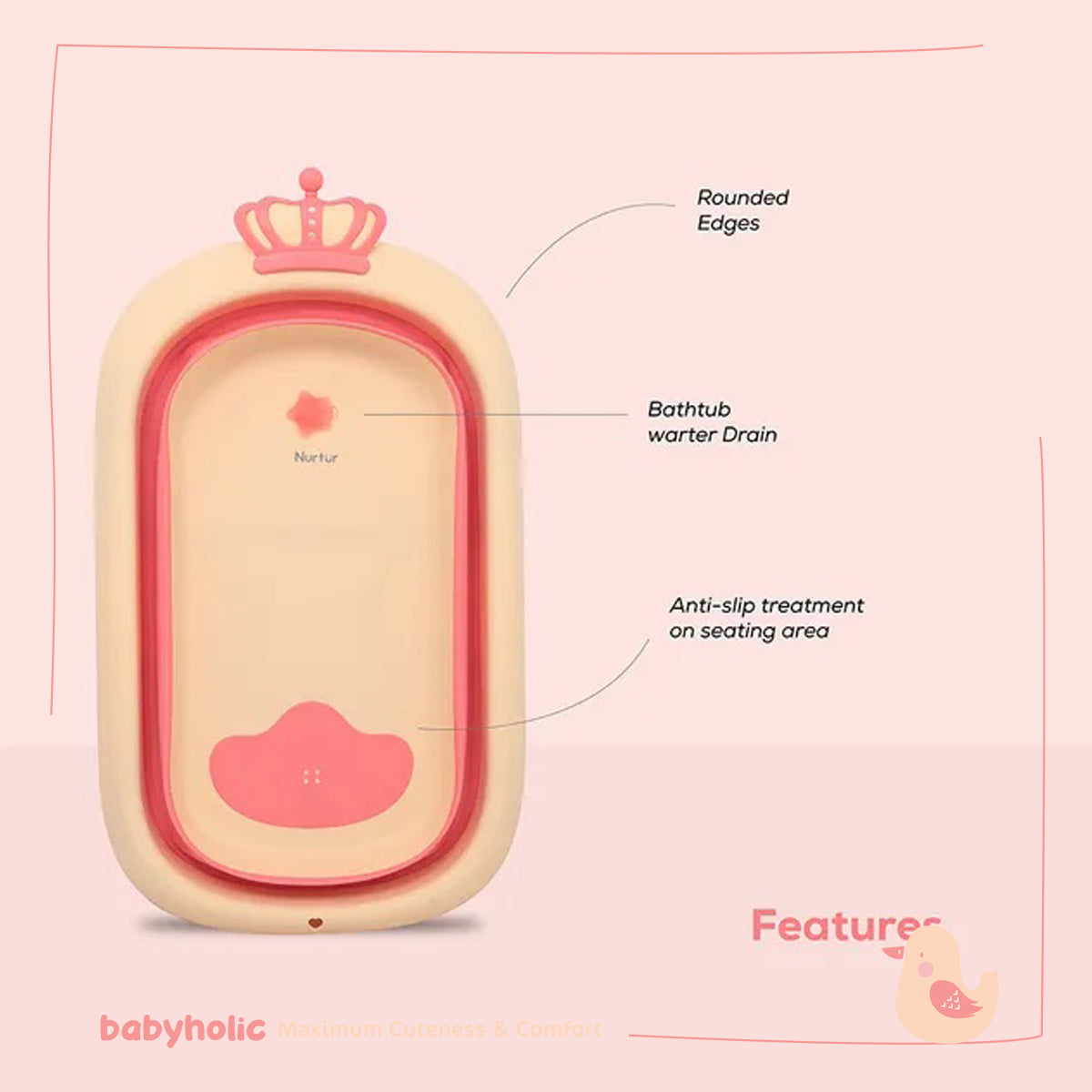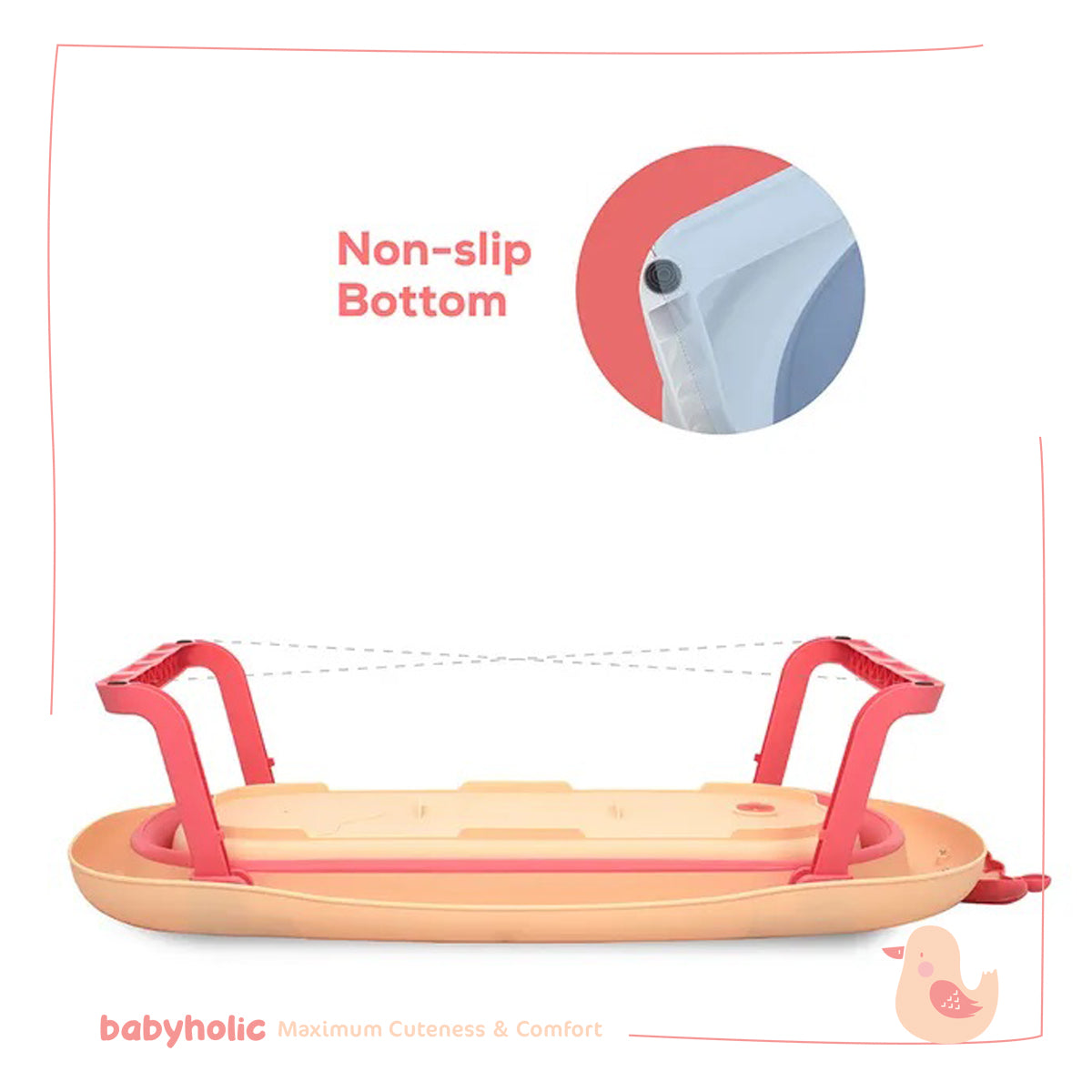 The foldable baby bathtub will not occupy much space, and can be easily opened when in use. It can be placed in a narrow space or can be hung when not in use. This bathtub creates a safe and comfortable environment for children while bathing. This smartly designed baby accessory features a digital temperature sensor to prevent overcooling and overheating. Baby lies down to bathe and play while retaining heat for a long time without losing it to enjoy bath time. This bathtub will immediately attract children's attention with its cute appearance and bright colors so they can happily enjoy bath time. The Bathtub is equipped with strong, supportive legs with anti-slip material making it easy to use on any flat surface. Water-resistant features help drain quickly.