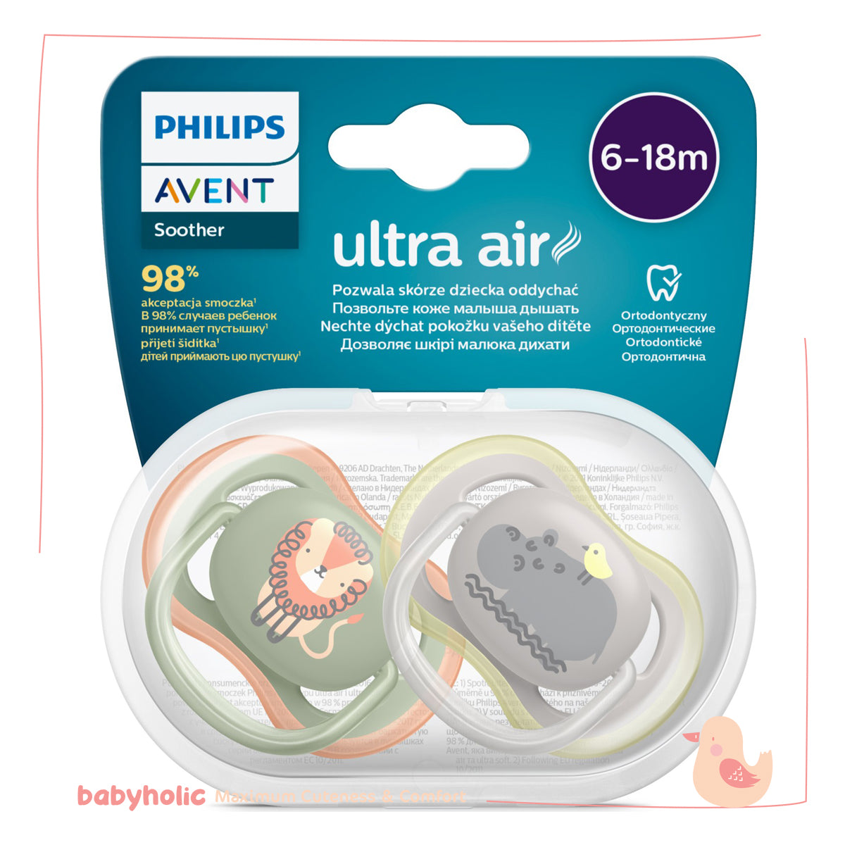 Soothe with the comfort of air. The Philips Avent ultra air pacifier has extra-large airholes to keep your baby's skin dry. Available in various colors and designs.