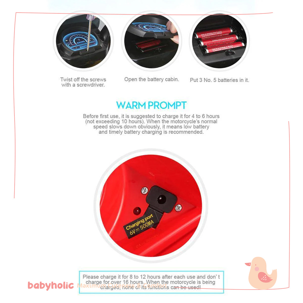 This high-quality baby motorcycle ride-on toy is made of durable ABS plastic, ensuring safety and longevity. It features a vibrant yellow design, suitable for children aged 3+ years. Certified by EN71, EN62115, RoHS, ASTM-F963, and more, it complies with international safety standards,