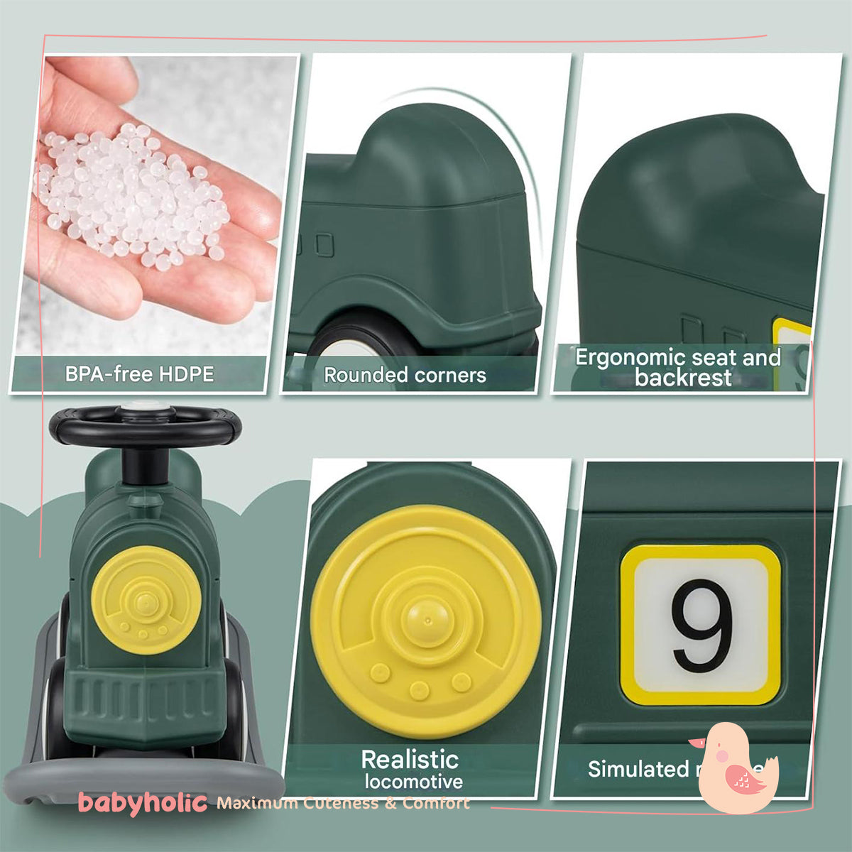 Our rocking horse can also be used as a scooter or a balance board. It’s super easy to convert and assemble. 3 playing methods make it suitable for 18-72 months old kids. It cute shape will attract kids’ attention. Meanwhile, 40° tilt angle and 4-point support make it safe to rock forward and backward. The BPA-free material and burr-free edges ensure kids’ playing safety. 4 high-quality wheels allow for steady movement on indoor and outdoor surfaces. Moreover, certified by ASTM and CPSIA, our rocking horse is safe enough for kids to play.