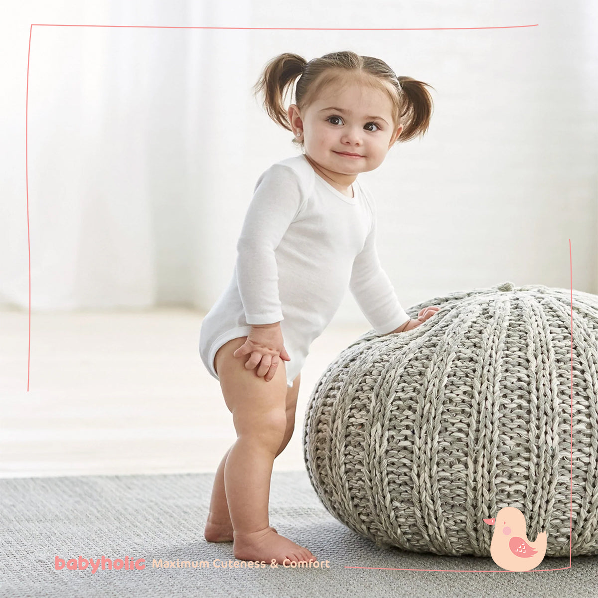 Pack of 3 Pcs - White Cotton Bodysuits Long Sleeves